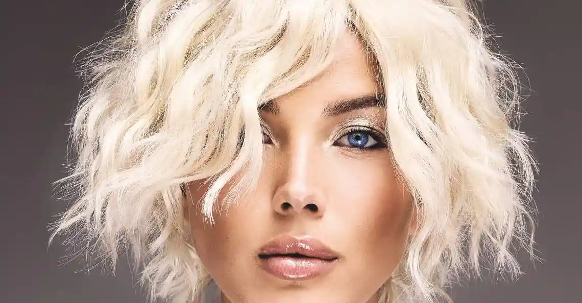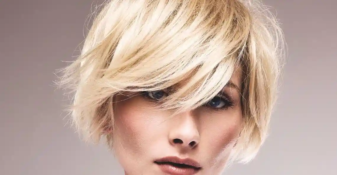 - Un carré court déstructuré, texturisé par un effilage pour apporter mouvement et légèreté. La frange longue et asymétrique révèle un look messy-chic. Le blond chaud adoucit le résultat final.